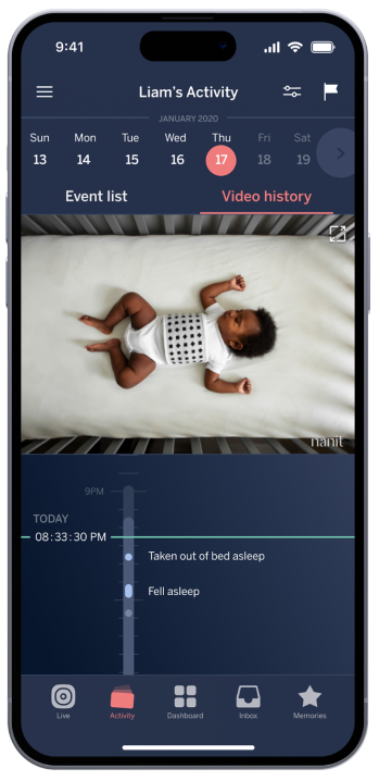 Nooit meer gokken of het tijd is voor een dutje. Nanit voorspelt precies wanneer je kindje toe is aan slaap. Zo voorkom je oververmoeidheid en plan jij je dag met een stuk meer rust en vertrouwen.** - Herinneringen vastleggen